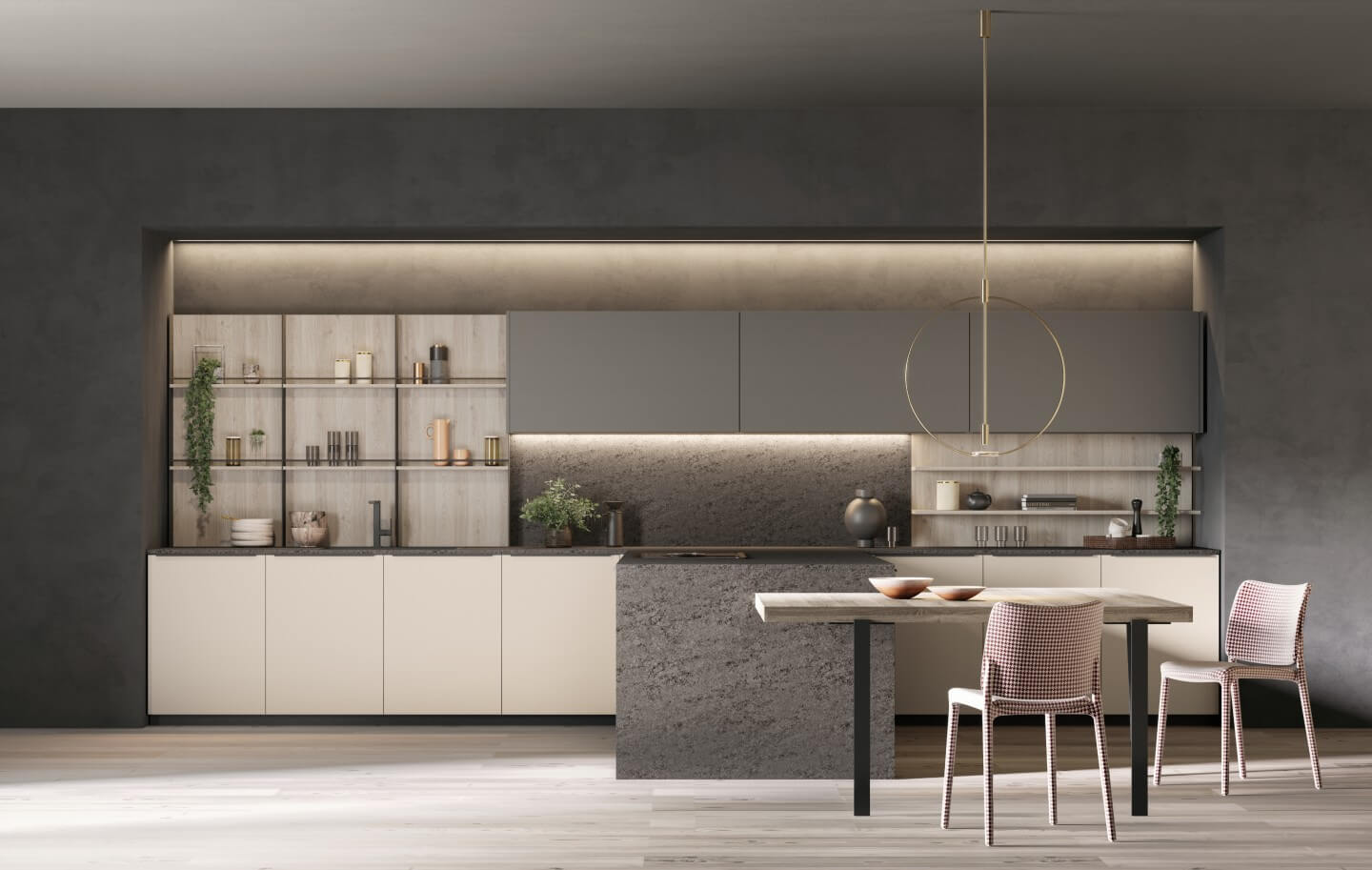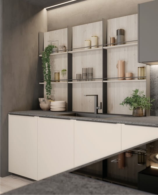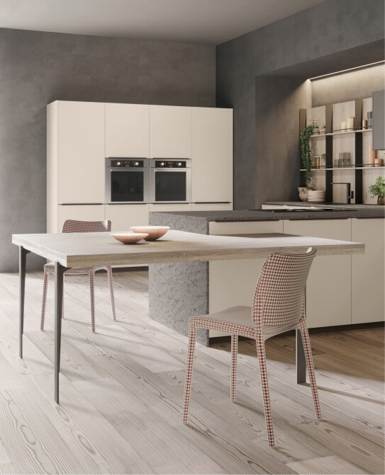 Alexia reinterpreta l'essenza del design classico, rendendolo attuale e funzionale. La maniglia integrata, distintiva e pratica, è un omaggio alla tradizione, mentre le linee pulite e lo stile senza tempo conferiscono carattere a ogni spazio. Una cucina che unisce estetica e praticità in un equilibrio perfetto.