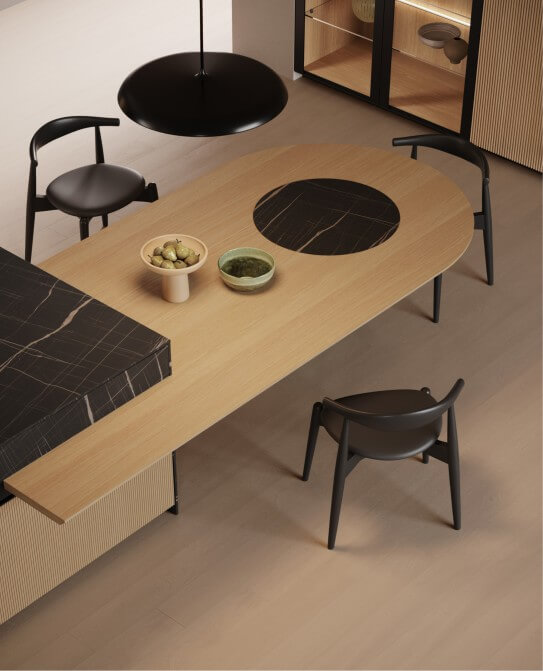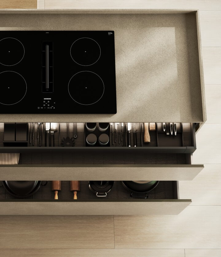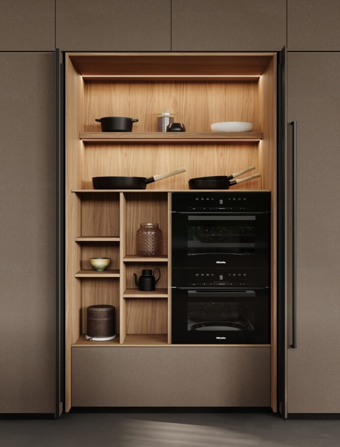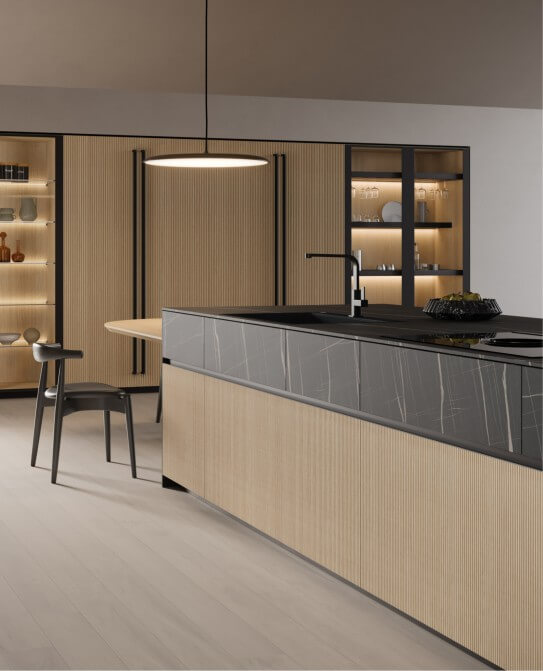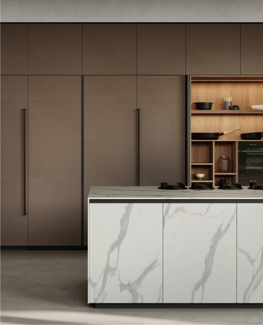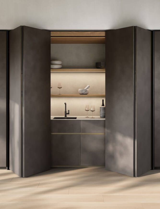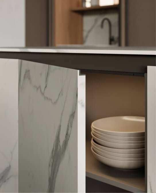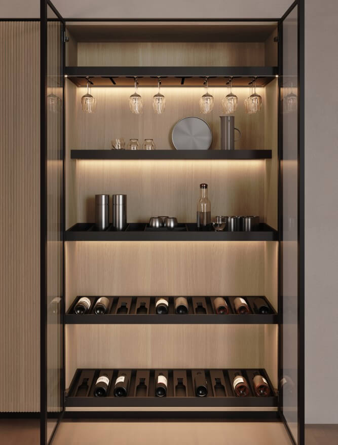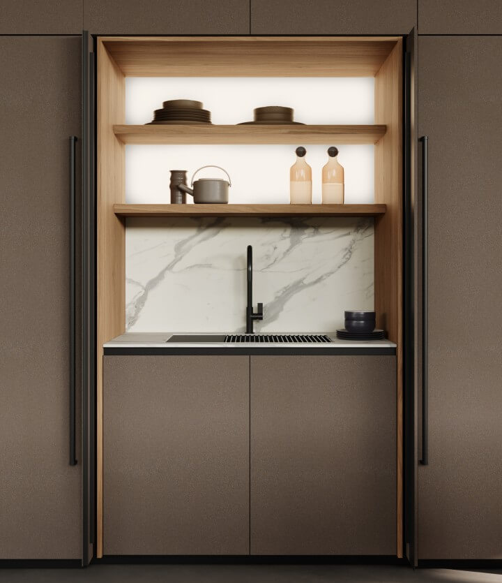 Kate si distingue per il suo design minimalista ed essenziale, valorizzato dall’assenza di maniglie. Studiata per un utilizzo pratico e intuitivo, l’apertura dell’anta agevola la presa e offre massima funzionalità, integrando eleganza e semplicità in ogni dettaglio.