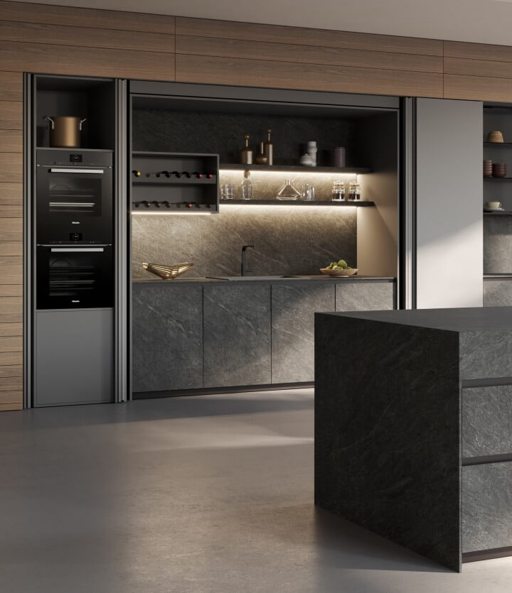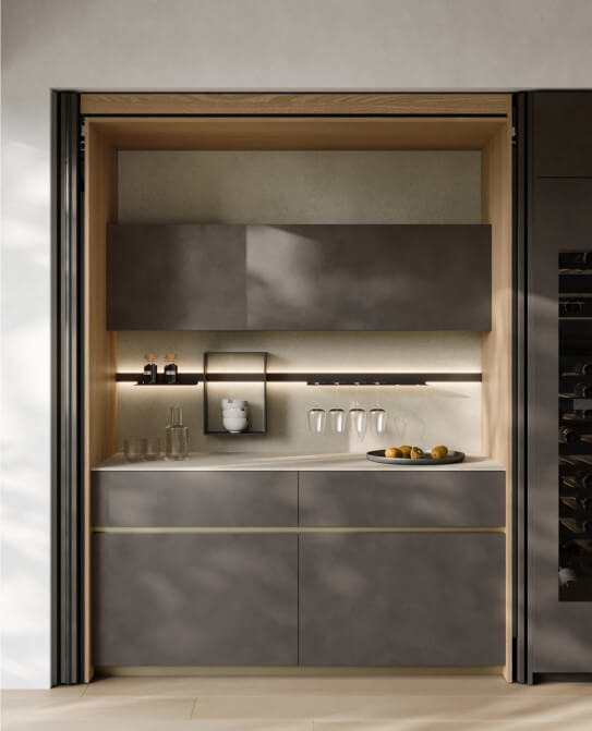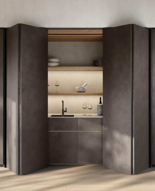 L’innovativo sistema Revego permette la chiusura degli spazi operativi quando non sono in uso in modo semplice e intuitivo. L’assenza di maniglia crea una gradevole pulizia di stile. Una soluzione meccanica che offre un confort di movimento molto elevato sia in apertura che in chiusura.