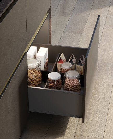 E’ l’innovativo sistema di accessori interni che si adatta come un abito sartoriale all’interno dei cassetti e cestoni Legrabox di ogni cucina e dà massima libertà di configurare e ordinare gli spazi in base al proprio gusto e alle proprie esigenze.